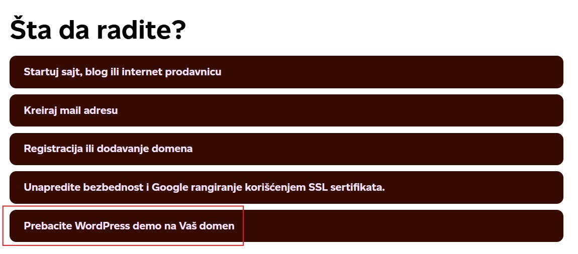 Sledite korake ispod da biste pretvorili vašu demo u potpuno funkcionalnu veb stranicu na vašem sopstvenom domenu.